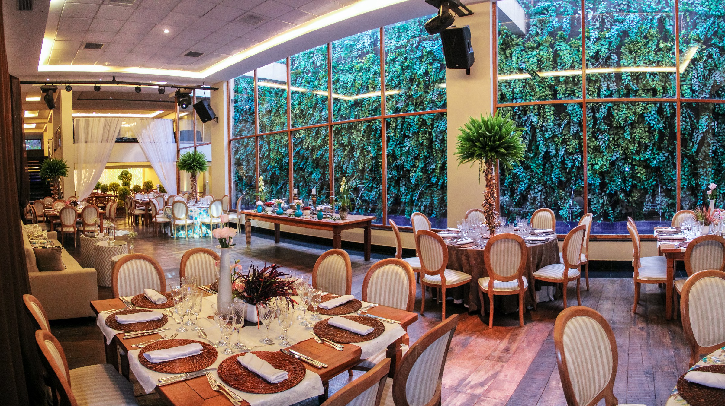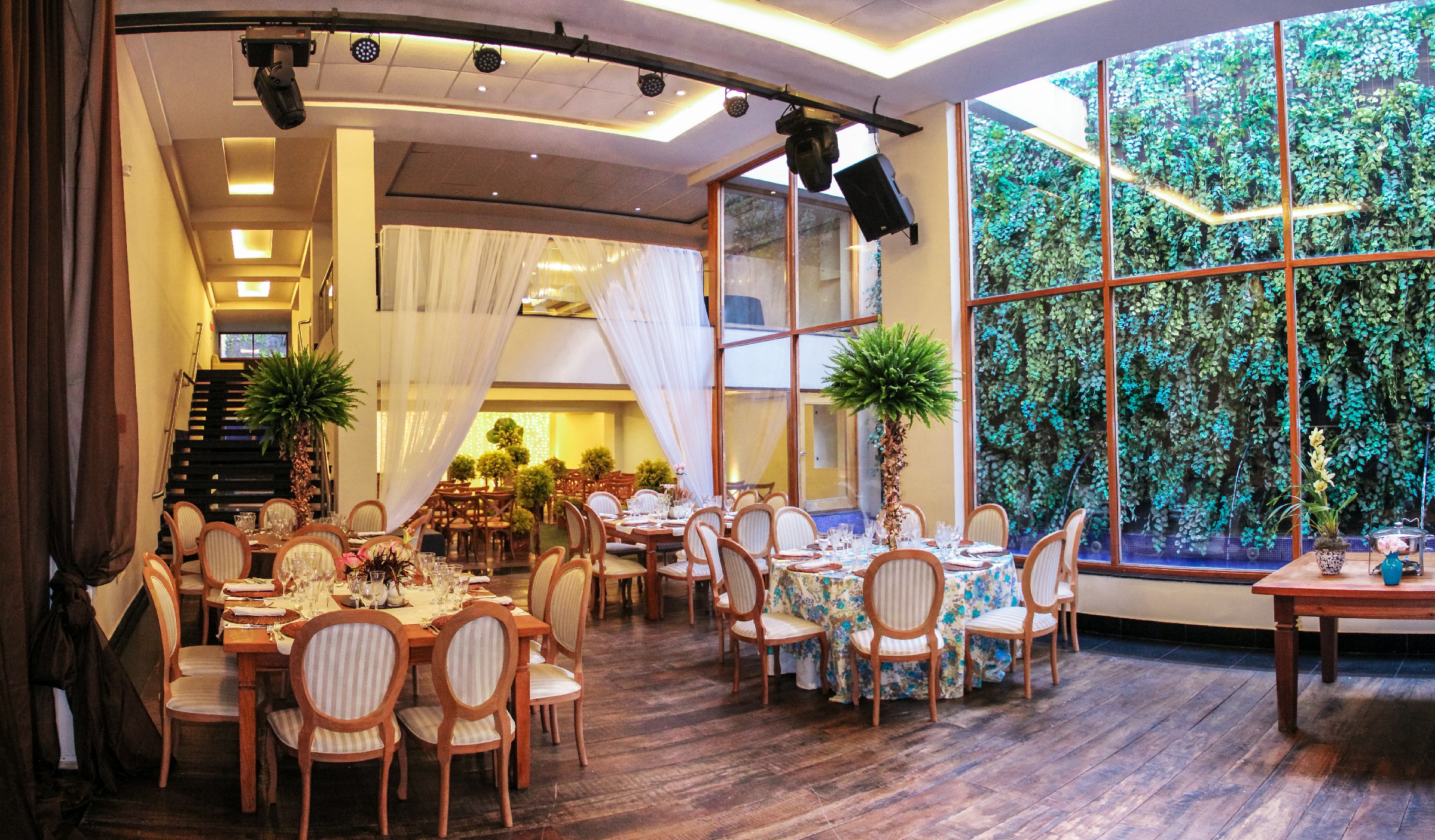 O Espaço conta com serviço de gastronomia própria. Uma cozinha contemporânea com toques especiais de Brasilidade com flexibilidade para ser adequada aos padrões mais exigentes. Todos os Menus são criados exclusivamente para cada evento, permitindo aos clientes que adaptem o Menu ao seu gosto pessoal, com serviço impecável adequado ao perfil de cada evento.